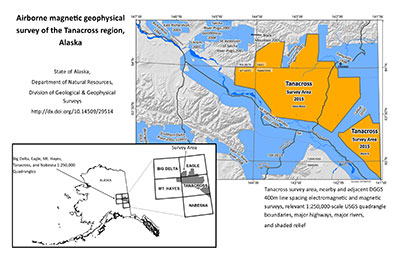 Airborne geophysical data for the Tanacross area were acquired and processed by Goldak Airborne Surveys under contract with the State of Alaska, Department of Natural Resources, Division of Geological & Geophysical Surveys (DGGS). Project funded by the US Geological Survey, Mineral Resources Program. This high sensitivity aeromagnetic survey was carried out by Goldak Airborne Surveys (Goldak) on behalf of the Alaska Department of Geological and Geophysical Surveys (DGGS) between June 17th and July 31st, 2015.