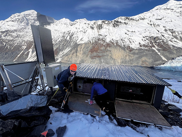 USGS Geoprevent colleague installing radar site telemetry upgrades in Barry Arm. Photo by S. Corbett, USGS.